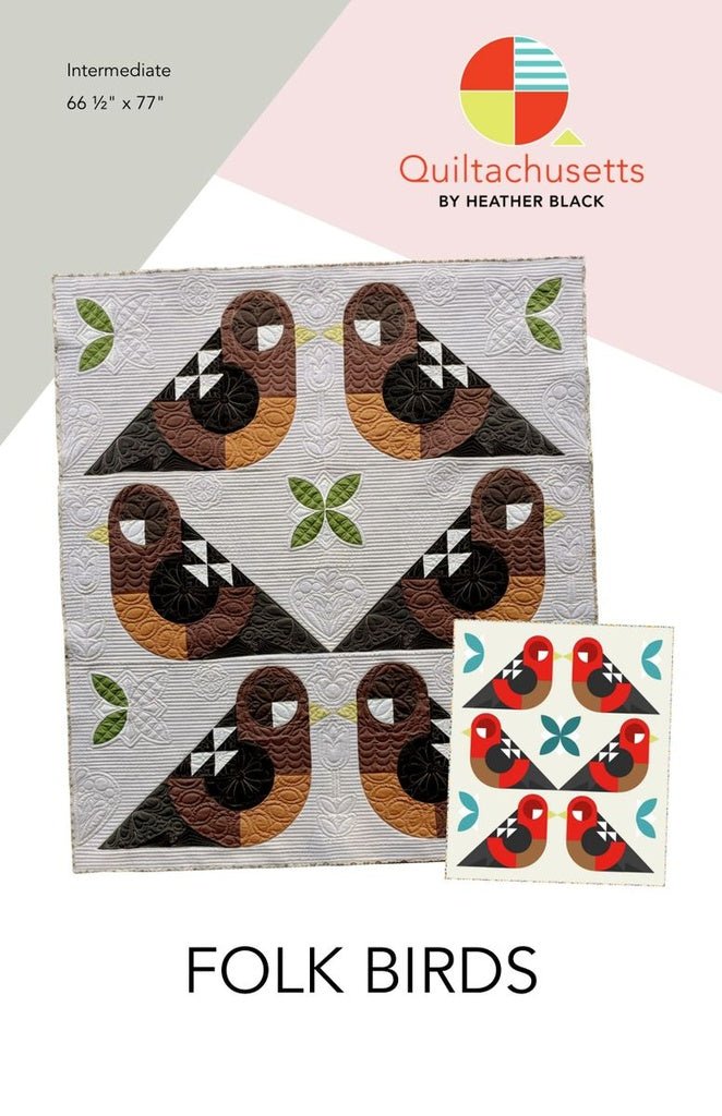 These beautiful birds are inspired by mid-century Scandinavian folk art and have a warm stylish look. The easy to follow pattern includes color diagrams, full size diagrams and a coloring page to test out your own color palette or quilting designs.