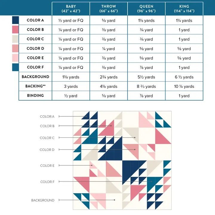 Sizes: Baby (42″ x 42″), Throw (66″ x 66″), Queen (96″ x 96″), and King (114″ x 114″).